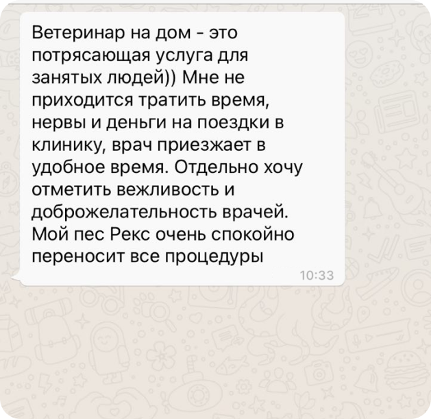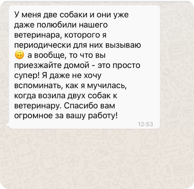 Ветеринар приедет в выбранное вами время с необходимым медицинским оборудованием и препаратами
